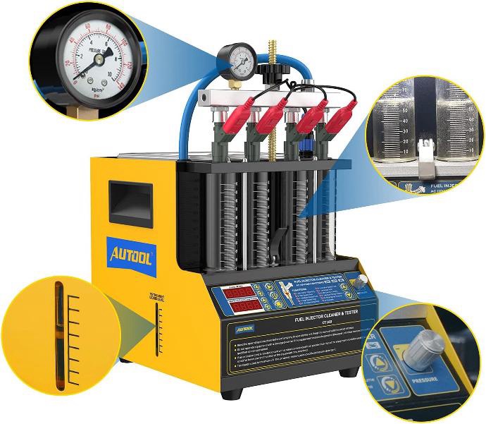 Equipado con una tina de limpieza ultrasónica integrada, el Autool CT160 realiza una limpieza simultánea en varios inyectores, mientras que su bandeja térmica elimina por completo los depósitos de carbón, garantizando una óptima eficiencia de limpieza. Ideal para vehículos de 4 cilindros, este limpiador de inyectores también puede adaptarse para vehículos de 2 cilindros tras bloquear dos tubos de ensayo.