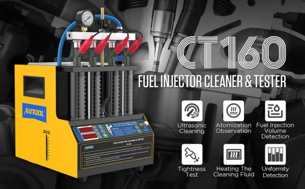 El Autool CT160 es un equipo de limpieza y probador de inyectores con ultrasonido diseñado para mejorar el rendimiento de los motores de gasolina de hasta 4 cilindros. Este versátil y compacto dispositivo, compatible con voltajes de 110V y 220V sin necesidad de transformador, ofrece una limpieza profunda tanto por dentro como por fuera de los inyectores, gracias a su función de descarga inversa.
